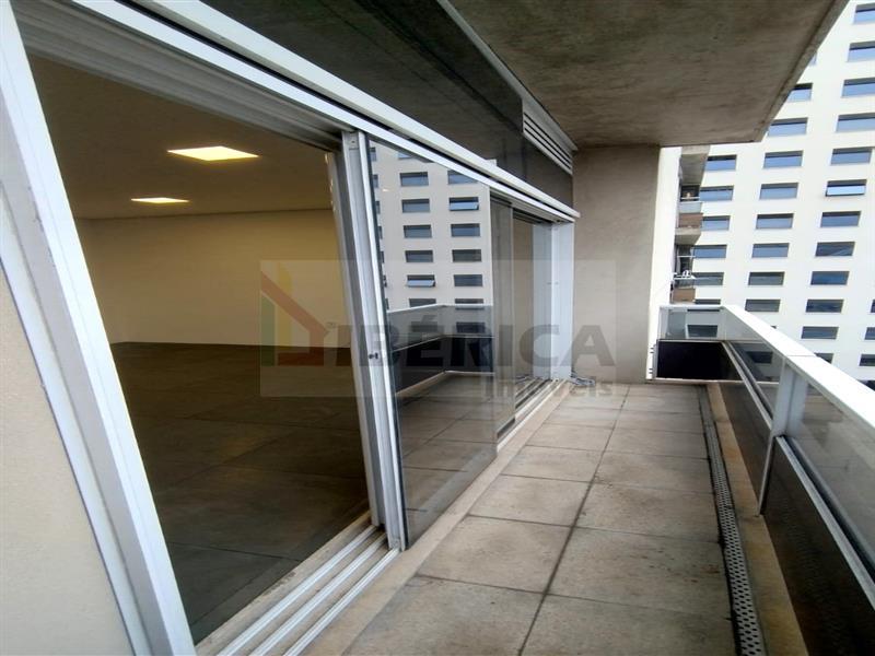 O imóvel possui uma sala com espaço amplo, janela ampla também, piso suspenso, varanda, 01 banheiro e 01 vaga de garagem.